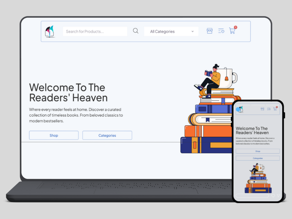 A modern bookstore website where readers can easily browse, discover, and purchase books across various genres. It offers a clean, user-friendly design with detailed book pages, secure checkout, and a seamless reading-inspired shopping experience.
